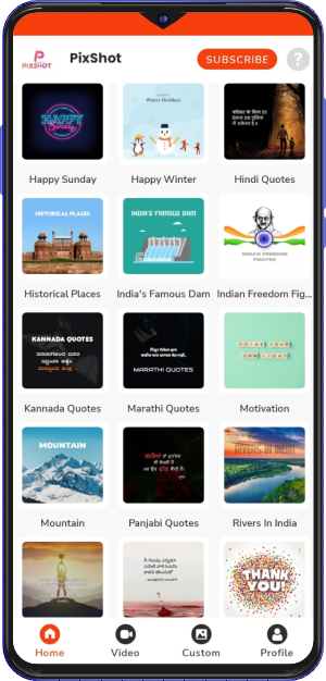PixShot Festival Post Maker provides a range of ready-to-use designs that cater to various needs, such as Festival posts, Election banners, Political Posters, Business Posts, Digital Cards, Intro Video Makers, Invitation Cards and more.