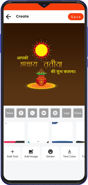 Change the frames which you like, add text, shape, Sticker, then Save and Share the festival post on the social media.